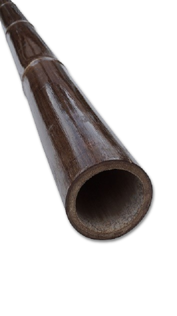 Dark-toned Wulung bamboo poles with deep color and solid texture for decorative and architectural uses.